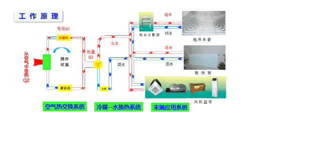 空氣源熱泵從原理上說, 生活中常見的冰箱也是一種熱泵, 夏天冰箱里面是4-7度, 外面是30-35度, 當我們把一盤熱菜放進冰箱時,菜里面的熱量散發(fā)到冰箱里面的冷空氣中,冰箱里面的機器開始工作,把里面冷空氣里面的熱量搬到外面的空氣里面來,這樣不斷的工作, 冰箱里面才能維持一個恒定的溫度,當我們用手摸冰箱的側(cè)面或后面時,會有點微微的熱, 這就是冰箱在進行熱量的搬運!